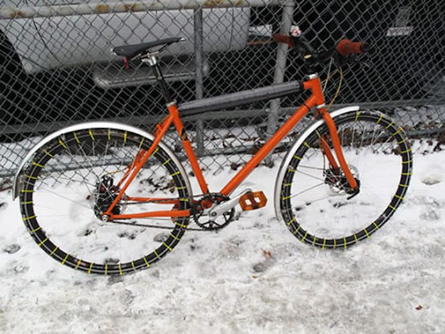 Πατέντα σε ποδήλατο για να μην γλυστράνε τα λάστιχα στο χιόνι..